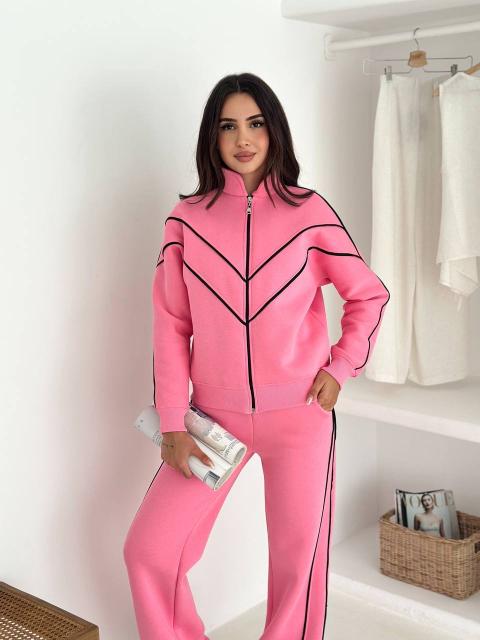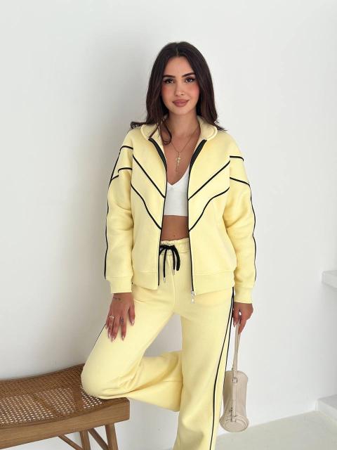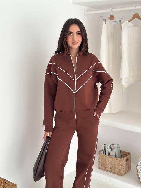 Modern zip jacket paired with comfortable pants for a clean, effortless look.