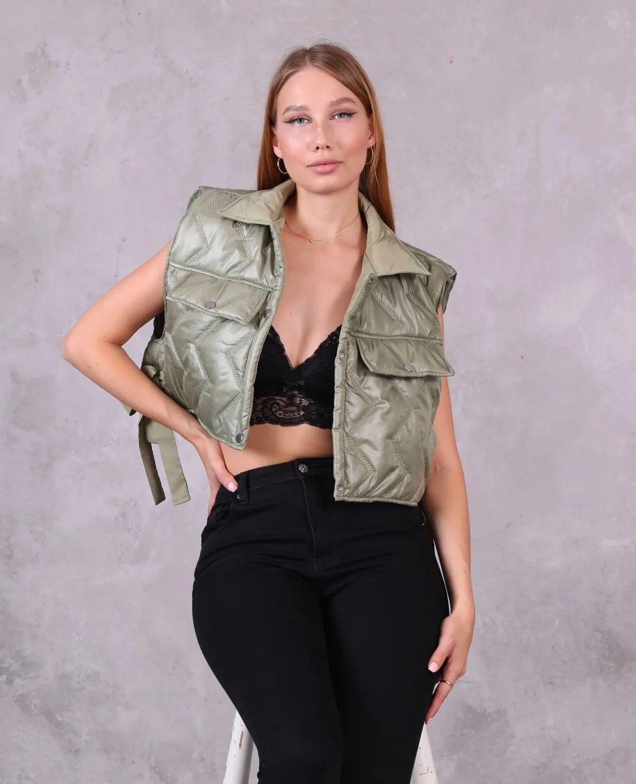 A bold, fashion-forward cropped vest with structured utility-inspired details. Featuring snap-button closures, cargo-style chest pockets, and adjustable side ties for a customizable fit. Ideal for pairing with bralettes, tees, or high-waisted bottoms to create effortlessly edgy outfits.