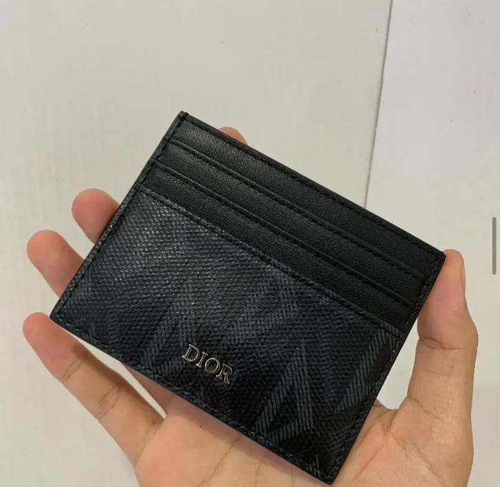 - Design: A sleek, slim card holder. It typically features a silver or ruthenium-finish brass Dior signature on the front.