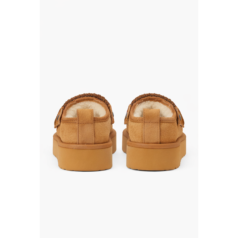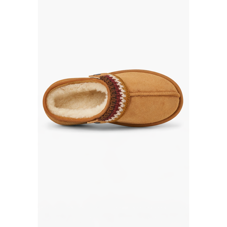 A warm, slip-on clog crafted with a soft suede feel and plush inner lining for maximum comfort. Features a supportive platform sole, durable grip outsole, and a detailed woven strap for a stylish, laid-back look. Easy to wear and perfect for everyday casual comfort.