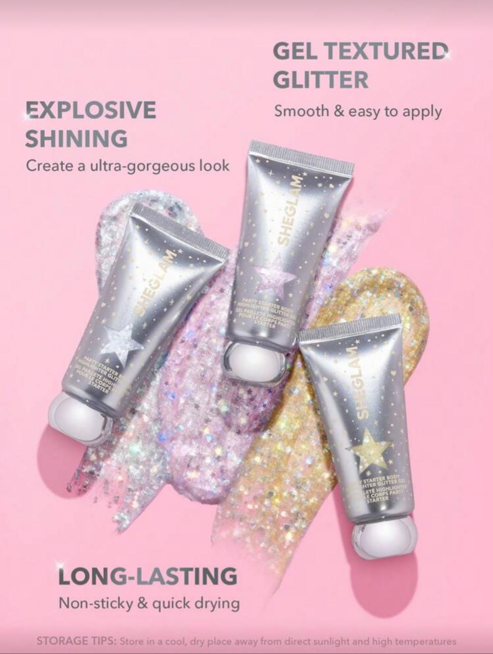 Spice up your look and stand out among the crowd with our striking body highlighter gel! Featuring a strong eye-catching glitter effect with star and heart-shaped pieces, this body gel is fast and easy to apply. Plus, it’s quick-drying, non-sticky, and long-lasting to help you transform your look into something ultra-gorgeous (and ultra-sparkly) in seconds!