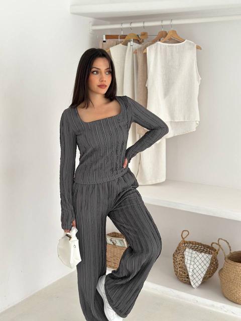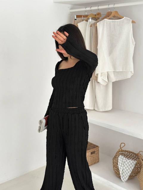 A relaxed two-piece set designed for effortless everyday wear. Crafted from a soft, lightweight fabric with a gentle pleated texture, it offers a comfortable fit and easy movement. The minimal silhouette makes it perfect for casual styling while maintaining a clean, modern look. Ideal for all-day comfort with a touch of understated elegance.