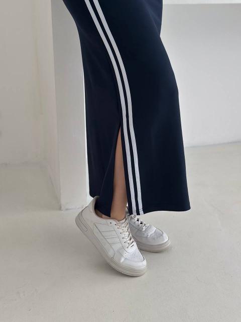 Slim-fit maxi dress with contrast side stripes. Soft, stretchy fabric for a flattering and comfortable everyday look.