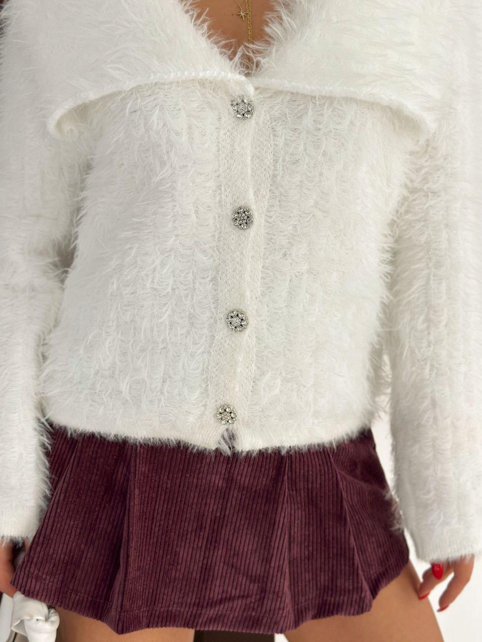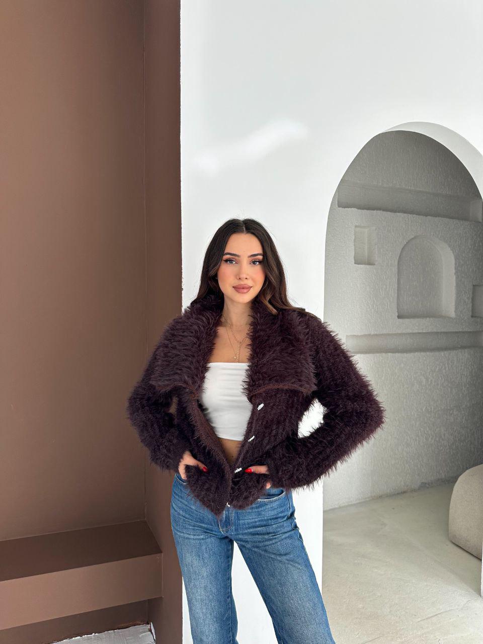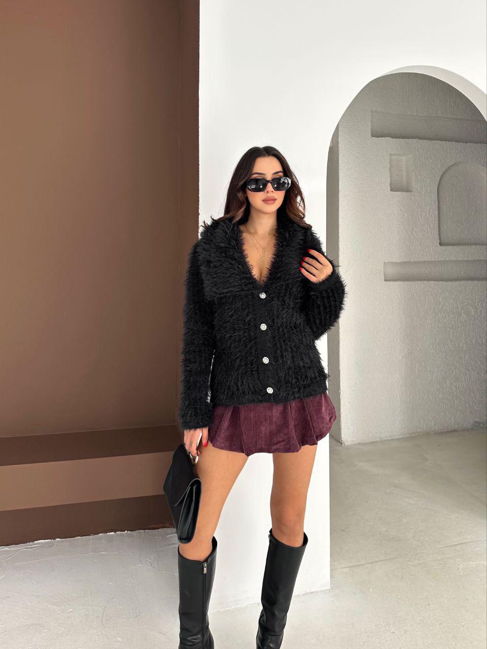 Stylish winter cardigan made from soft faux fur fabric, offering a warm and comfortable feel. Designed with a modern fit and front button closure for an elegant look. Easy to style with jeans or trousers, perfect for casual outings and winter days.