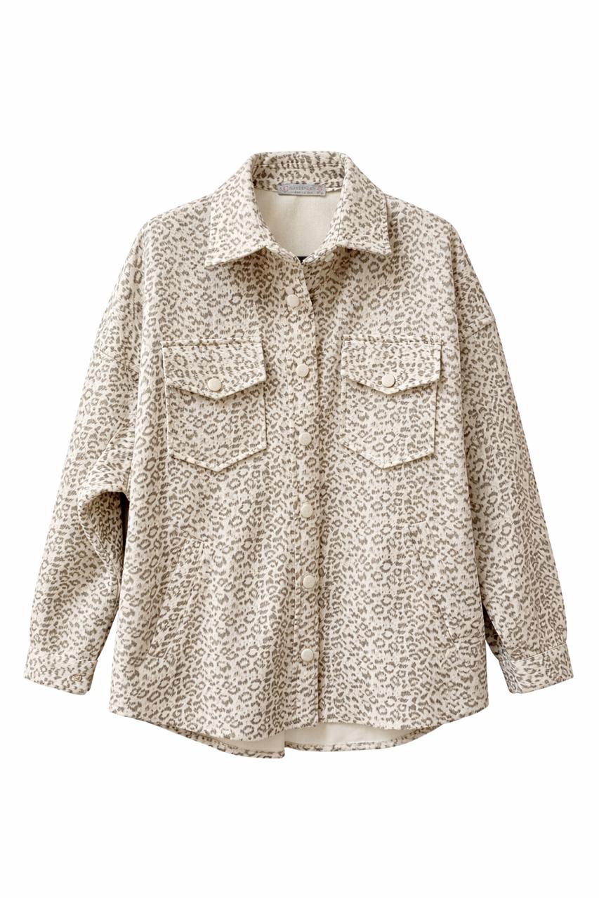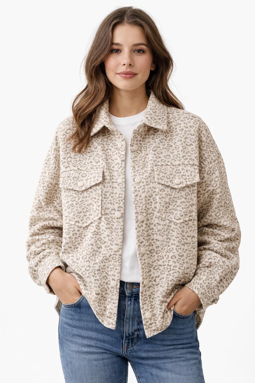 A trendy button-down overshirt featuring an all-over leopard print design for a bold yet versatile look. Designed with a relaxed fit, classic collar, and front flap pockets for a stylish utility touch. Perfect for layering over basic tops or wearing as a lightweight jacket for casual, everyday outfits. Easy to style with jeans, leggings, or tailored trousers for a modern statement look.
