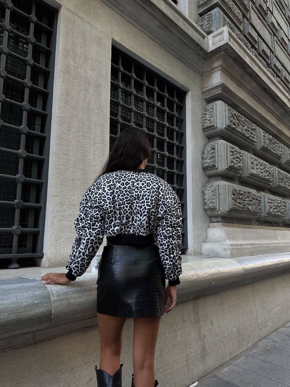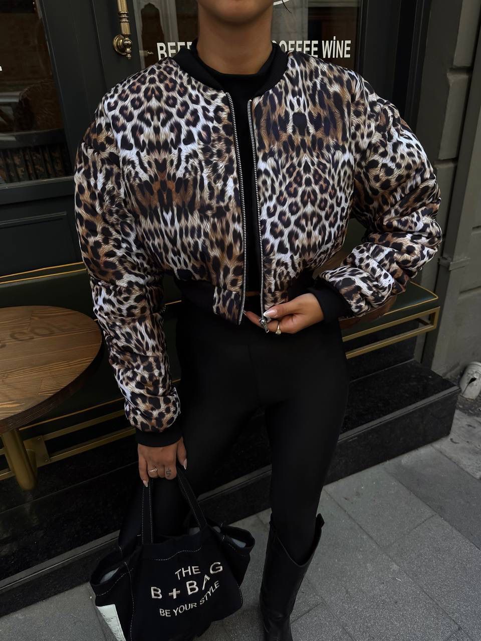 Make a bold statement with this leopard print cropped jacket, designed to elevate your everyday street style. Featuring a modern bomber silhouette with a front zipper closure and ribbed cuffs and hem, this piece combines comfort with an edgy, fashion-forward vibe. The striking monochrome leopard pattern adds a trendy touch that pairs perfectly with skirts, jeans, or leather pieces for effortless day-to-night looks.